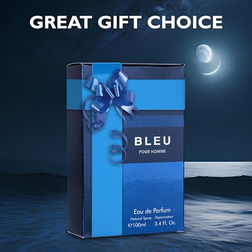 Bleu for Men Eau De Parfum – Blend of Citrusy Top Notes, Aromatic Spices & Warm Woody Undertones – Combination of Grapefruit, Lemon, Mint & Pink Pepper – Elegant 3.4fl Oz Bottle – Versatile Gift